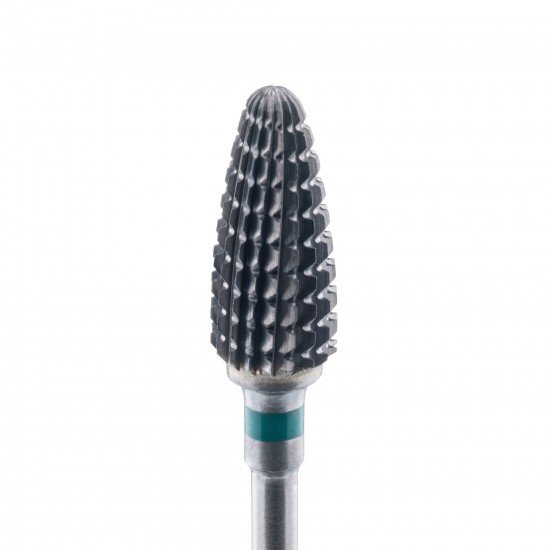 Frez karbidowy - mocny, w kształcie stożka z poprzeczno-krzyżowymi nacięciami. Do pracy zarówno „na sucho”, jak i z wodnym chłodzeniem. Idealny do szybkiego usuwania żelu i akrylu w pierwszych fazach pracy. Im bliżej naturalnej płytki proponujemy zmienić frez na delikatniejszy. Ma także swoje zastosowanie w podologii- świetny do usuwania zgrubiałej skóry i odcisków a także do opracowania zgrubiałych paznokci. Frez nadaje się do dezynfekcji i sterylizacji. Pasuje do każdej frezarki typu "twist and lock"
