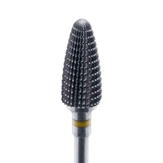 Frez z węglika spiekanego- bardzo delikatny w kształcie stożka o drobnych nacięciach poprzeczno-krzyżowych. Przeznaczony głównie do szybkiego i bezpiecznego usuwania lakieru hybrydowego, resztek żelu bądź akrylu, nie uszkadzając przy tym płytki paznokcia. Dzięki swojej zaokrąglonej końcówce precyzyjnie usunie masę, która znajduje się bardzo blisko wału paznokciowego - nie naruszając tym samym konstrukcji zbudowanego paznokcia. Ergonomiczny kształt pozwoli na szybkie opracowanie paznokci nie nagrzewając płytki.