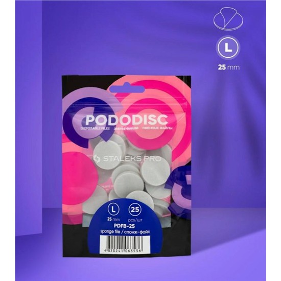 Samoprzylepne jednorazowe pilniki gąbkowe do dysku do pedicure PODODISC firmy Staleks Pro przeznaczone są do dokładnej, szybkiej i wysokiej jakości obróbki stóp. Ścierniwo jest na bazie pianki, doskonałe do polerowania powierzchni stopy dla utrzymania efektu gładkich stóp dłużej niż zwykle. Po użyciu pilnik z gąbki jest usuwany z powierzchni dysku, który można natychmiast wysterylizować.