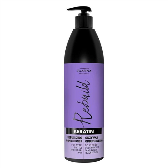 Odżywka odbudowująca z keratyną Joanna Professional została specjalnie opracowana do stosowania w salonach fryzjerskich. Polecana jest do pielęgnacji włosów osłabionych zabiegami fryzjerskimi, łamliwych, szorstkich i trudno rozczesujących się. Odżywka zawiera kompleks keratynowy, który odbudowuje osłabione włókna włosów, ułatwia rozczesywanie oraz sprawia, że włosy odzyskują elastyczność, sprężystość i siłę.